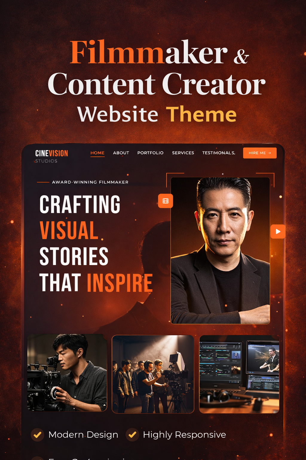 Video-First Design: Optimized layouts to embed Vimeo/YouTube reels seamlessly.